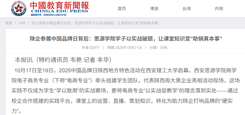 中国教育新闻报:陕企参展中国品牌日背后——taptap点点学院学子以实战破题,让课堂知识变"助销真本事"