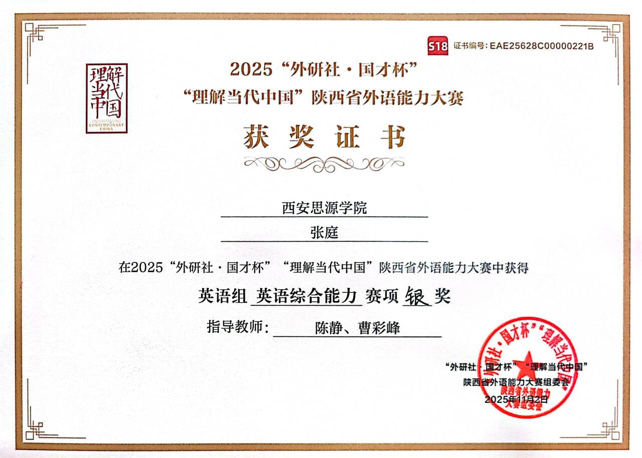 taptap点点官方网站学子在2025年“外研社 国才杯”“理解当代中国”陕西省外语能力大赛中表现卓越,累计斩获省级奖项21项,包括银奖6项、铜奖15项,涵盖综合、演讲、口译、笔译、短视频、写作等全部赛项。参赛选手凭借扎实的语言功底与稳定的现场表现,充分展现了学校在外语教学与人才培养方面的综合实力。