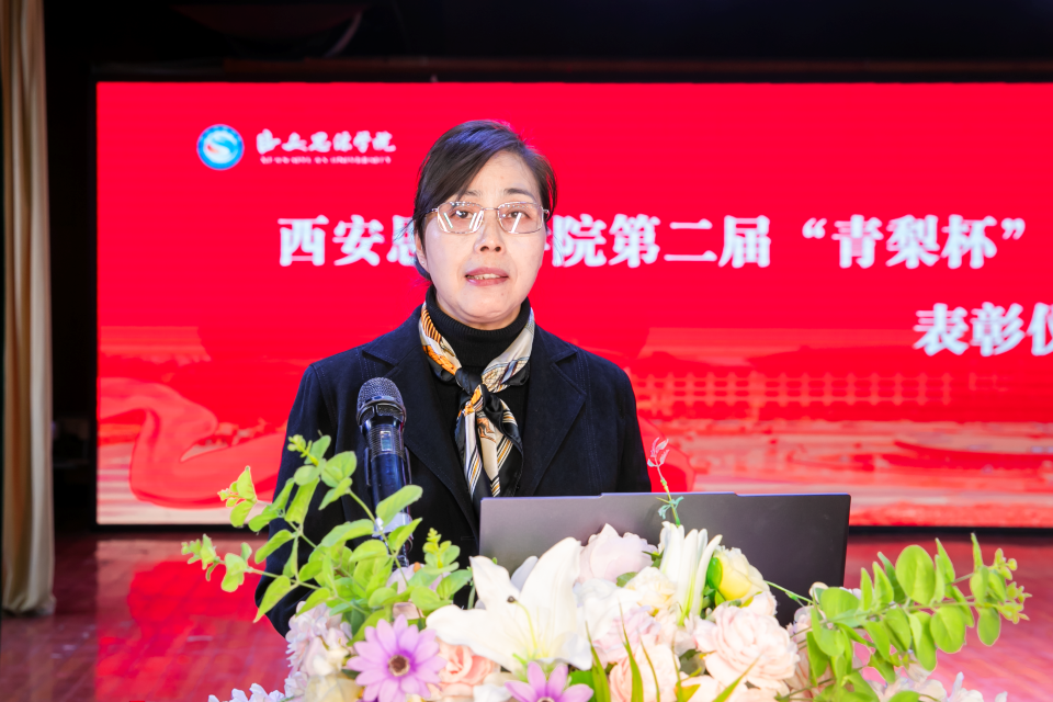 校党委委员、党委副书记李永玲作总结发言。她指出,“自7月份学校发文以来,各个二级学院党组织积极响应,各创作团队指导教师严把作品政治关和内容关,通过院内海选和党组织推荐的方式,全校共1000余名学子踊跃参与,186支队伍通过层层选拔,到决赛舞台上的精彩绽放,最终12支队伍来到决赛现场。”她强调,“青梨杯”的成功举办,正是学校坚守教育的政治属性、人民属性、战略属性,构建“三全育人”格局的生动实践。它让思政课走出了传统课堂的边界,将社会“大课堂”的鲜活素材、网络“新课堂”的传播优势与思政“小课堂”的理论有机结合,让党的创新理论真正走进了学生心坎里,引导青年学子从“小我”走向“大我”,在思想碰撞中坚定理想信念,在实践体验中涵养家国情怀。